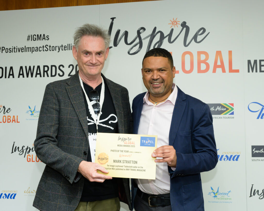 People / Community – MARK STRATTON for image captioned ‘Tablecloth seller on the Egyptian Nile’ published in JRNY Travel Magazine